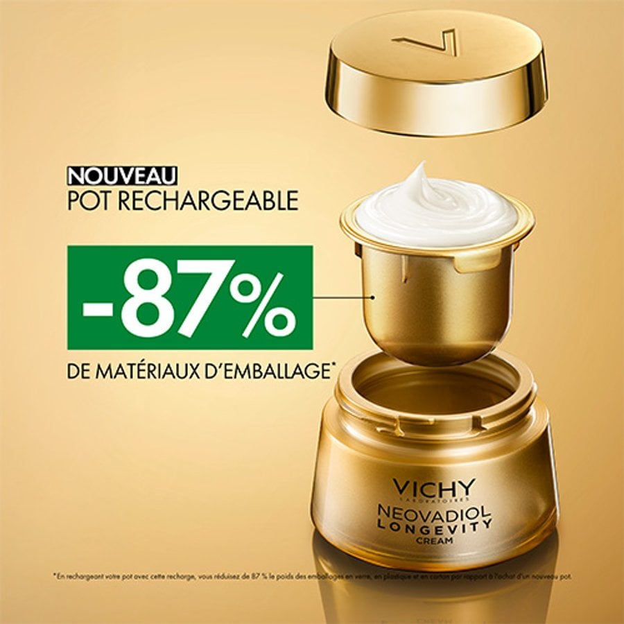 Crème revolumisante Longevity spécialement conçue pour les peaux matures, notamment après 50 ans. Sa formule enrichie en technologie Longevisia (Proxylane, niacinamide et actifs anti-âge) aide à redensifier la peau, restaurer les volumes du visage et améliorer la fermeté. Elle agit sur plusieurs zones clés (joues, contours du visage, rides) pour une peau plus repulpée, nourrie et visiblement plus jeune. Texture riche et fondante, adaptée aux peaux sensibles.