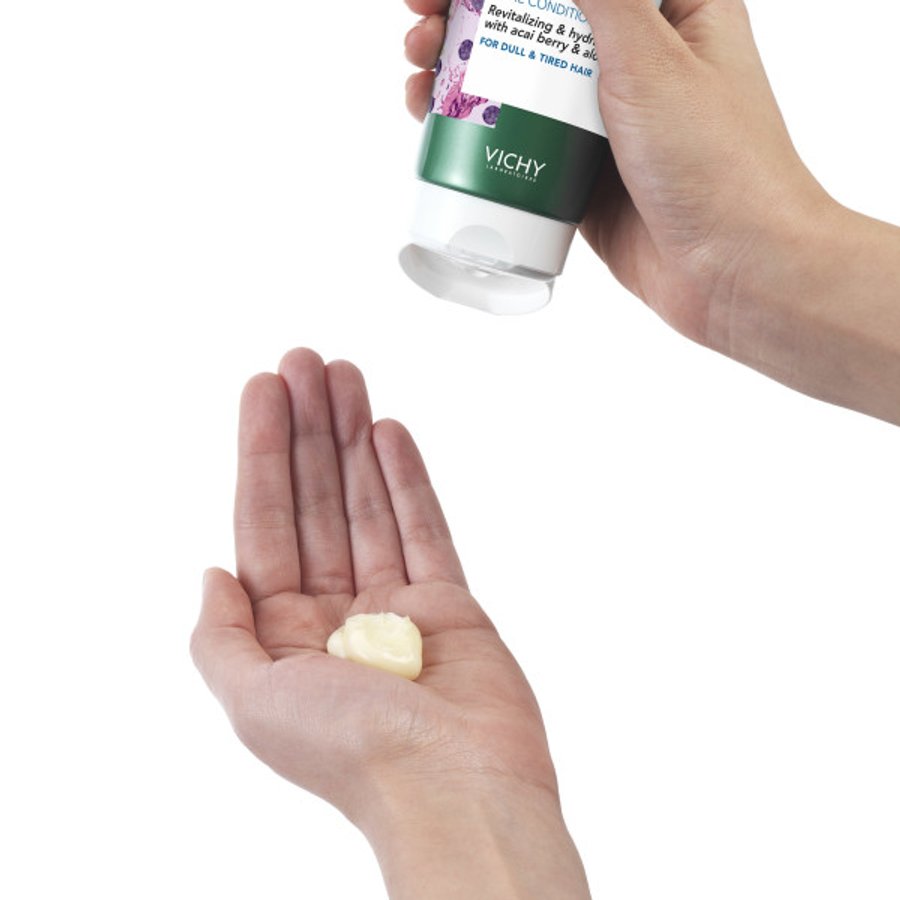 Après-shampooing revitalisant enrichi en vitamines A, C et E, spécialement conçu pour les cheveux ternes et fatigués. Sa formule associant la baie d’açaï et l’aloe vera hydrate, nourrit et redonne éclat et douceur aux cheveux. Il facilite le démêlage tout en laissant les cheveux plus brillants, souples et légers, sans les alourdir.
