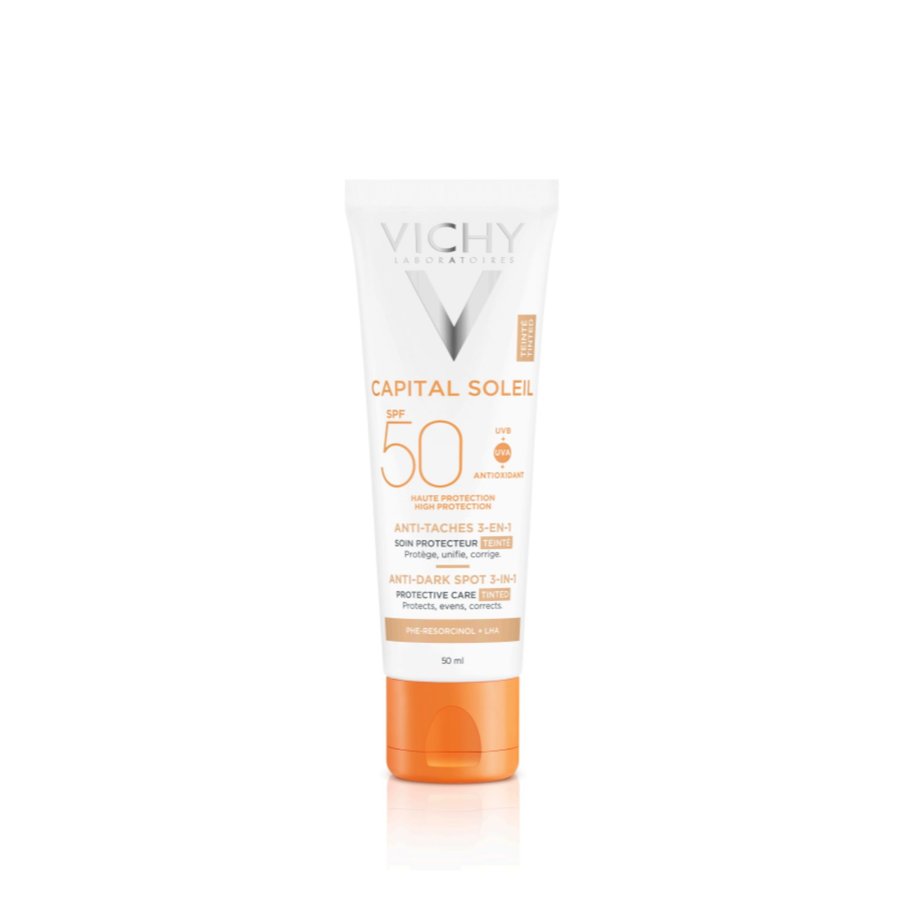 Soin solaire teinté 3-en-1 offrant une très haute protection SPF 50+ contre les rayons UVA et UVB. Il aide à corriger et prévenir les taches brunes tout en unifiant le teint grâce à sa formule teintée. Sa texture légère pénètre rapidement et laisse un fini mat et naturel, adapté à tous les types de peau, même sensibles.