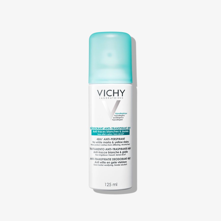 - L’aérosol anti-transpiration dure jusqu’à 48 heures. Prévient l’apparition des traces jaunes sur les textiles et des résidus qui peuvent les rigidifier. Anti-traces blanches sur les vêtements foncés.