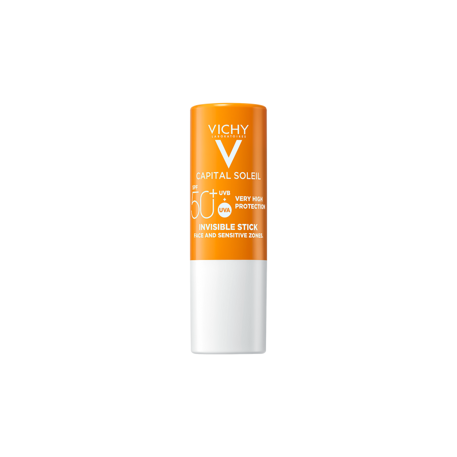 - Le stick solaire SPF 50+ CAPITAL SOLEIL des Laboratoires VICHY offre une très haute protection contre les rayons UVA et UVB sur toutes les zones sensibles (nez, oreilles, pommettes…) et les lèvres.